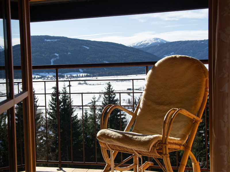 Viel helles Fichtenholz, viel Licht und Sonne.